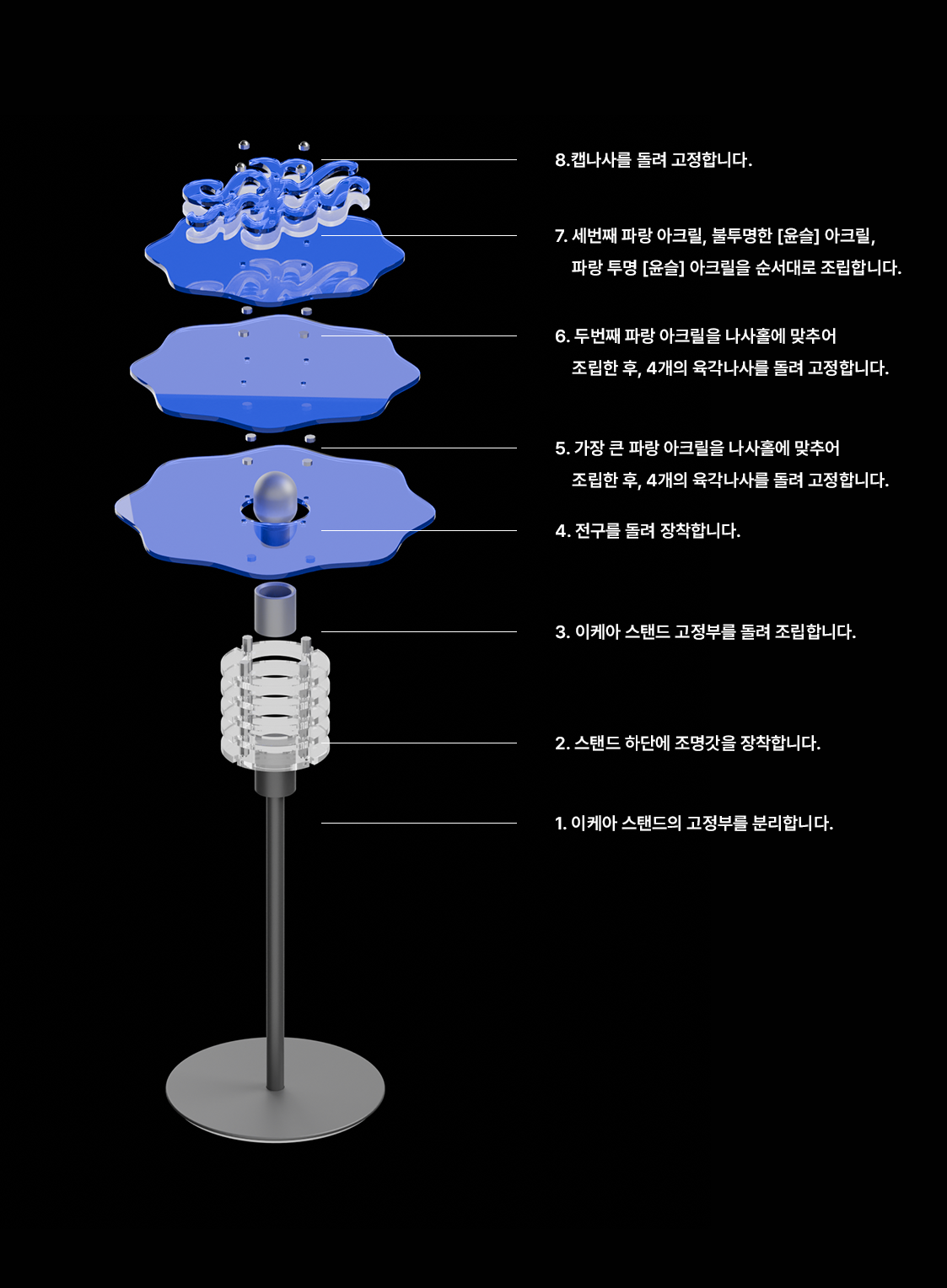 스탠드는 화이트컬러와 니켈도금 중 선택이 가능합니다.